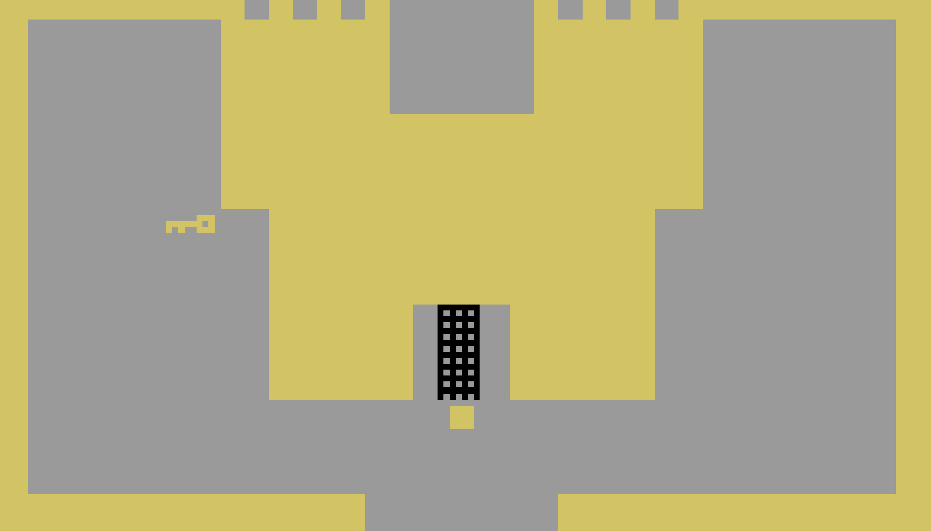 The game is basic in the extreme – the graphics involve you (a square) questing through various levels looking for relics (e.g. a chalice). Your character – a colored square – can only carry one item at a time. This reduces inventory management to a game of grab and stash, as you find the sword, use it to kill a dragon, then drop it somewhere you can find it again so you can go unlock a door with a key.